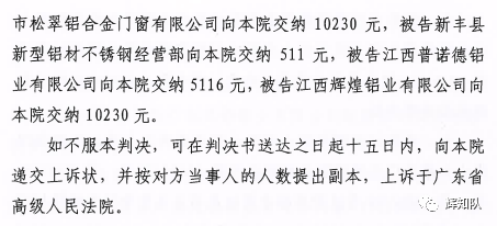 厦门凤铝系列维权案:诉辉煌公司等四被告,法院判赔250余万