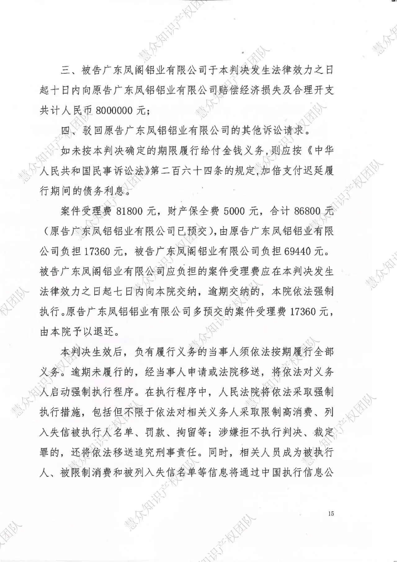 厦门判赔800万!辉知队代理“凤铝”商标维权案胜诉
